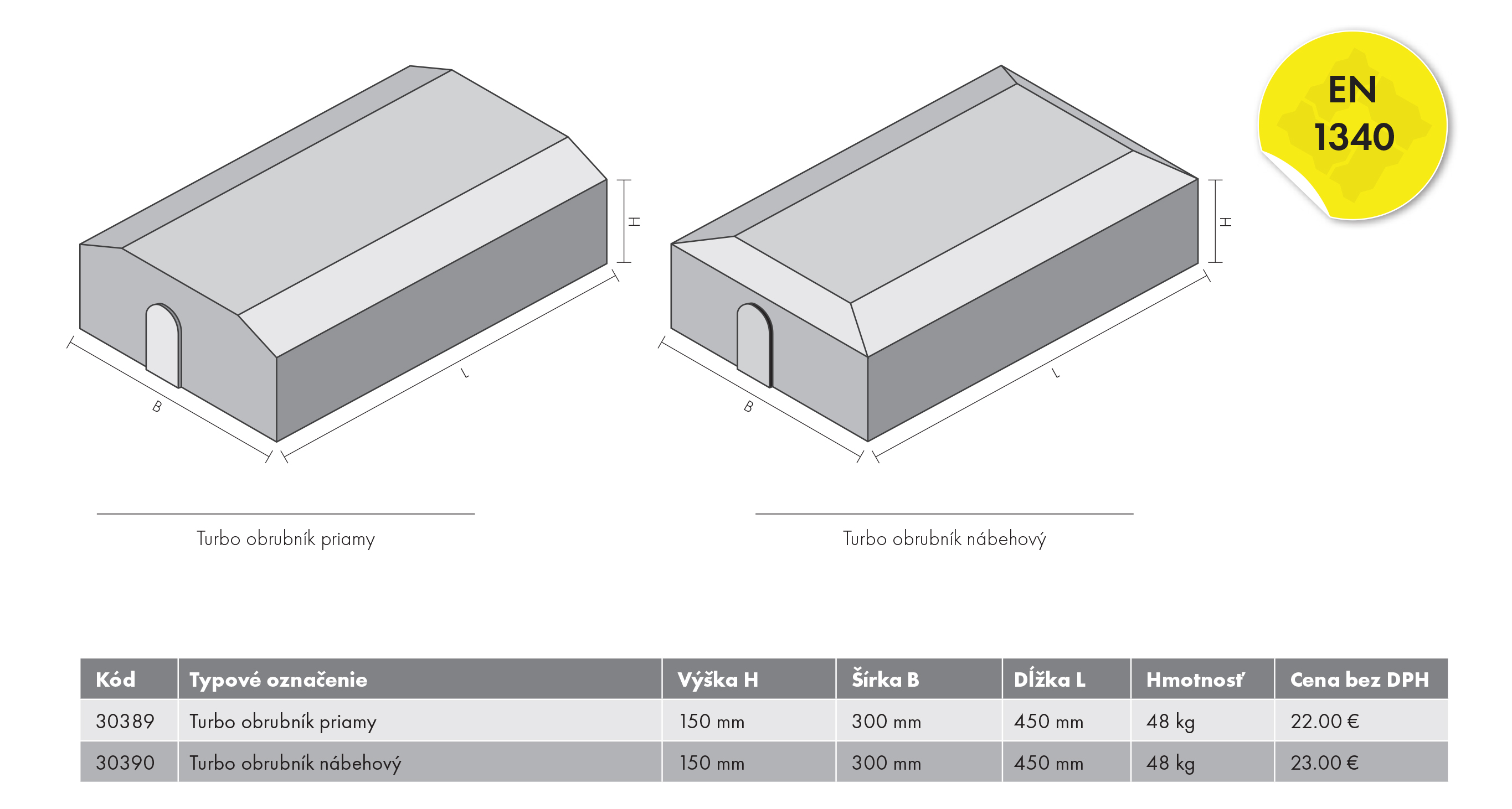 Vyrába sa v dvoch základných prevedeniach: priamy turbo obrubník, ktorý vytvára pevnú a jasne definovanú hranicu medzi pruhmi, a nábehový turbo obrubník so skoseným alebo zaobleným tvarom pre plynulý prechod medzi úrovňami vozovky.
